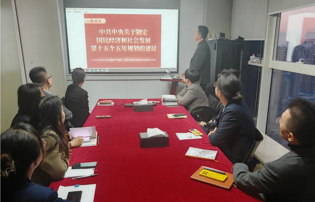 党的二十届四中全会审议通过的《中共中央关于制定国民经济和社会发展第十五个五年规划的建议》,为资本市场改革发展锚定了根本方向、擘画了实践路径,特别是“加快建设金融强国,提高资本市场制度包容性、适应性”的战略部署,为证券行业高质量发展提供了根本遵循。平安证券银川营业部作为平安证券服务宁夏区域经济的前沿阵地,第一时间组织全体员工专题学习全会精神,结合行业发展趋势与区域经济特点,在学思践悟中明晰职责使命,在对标对表中谋划实践路径。