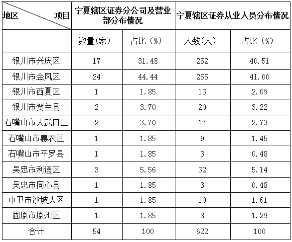 | 宁夏辖区证券分公司及营业部情况 | |||